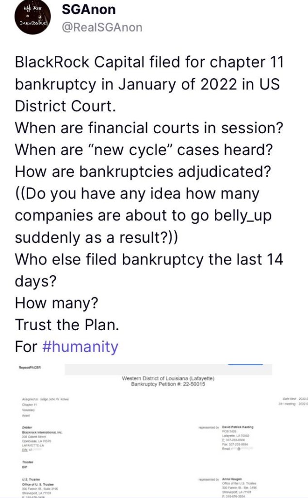 Here is a link to help understand the many bankruptcies about to happen including black rock which was filed in January 2022