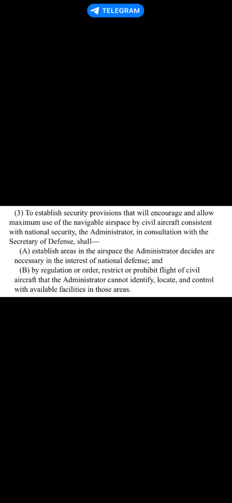 The Federal Aviation Administration (FAA) classifies the airspace as “NTL DEFENSE AIRSPACE”